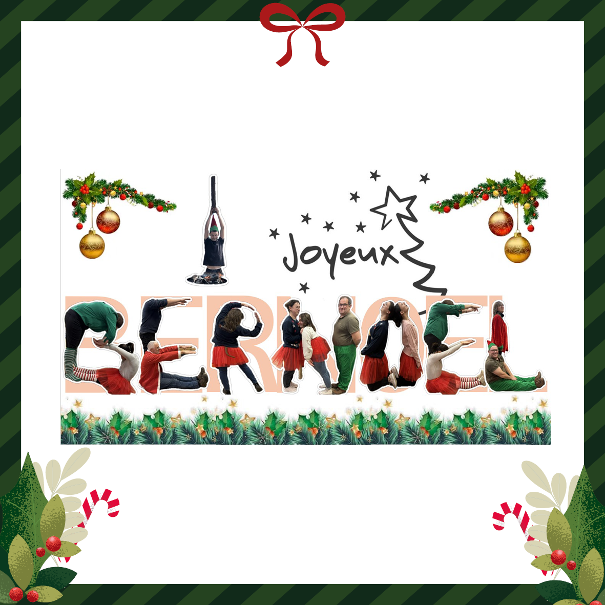 Défi à relever : Réaliser une photo avec des figures d'acrogym qui représentent un mot sur le thème de Noël. Chaque personne devra avoir sur lui un élément représentant Noël.