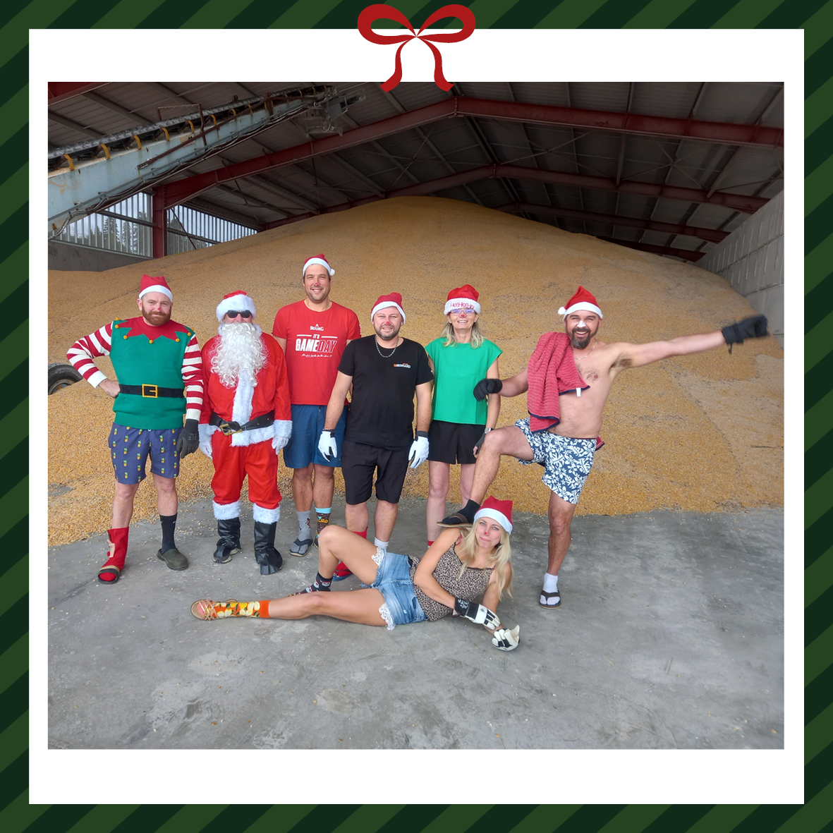 Défi à relever : Faire une photo avec une vache laitière « vivante » en arrière-plan, les personnes du dépôt devront également s’entourer de lutins farceurs et d’accessoires de Noël.