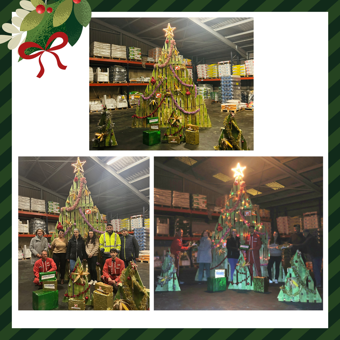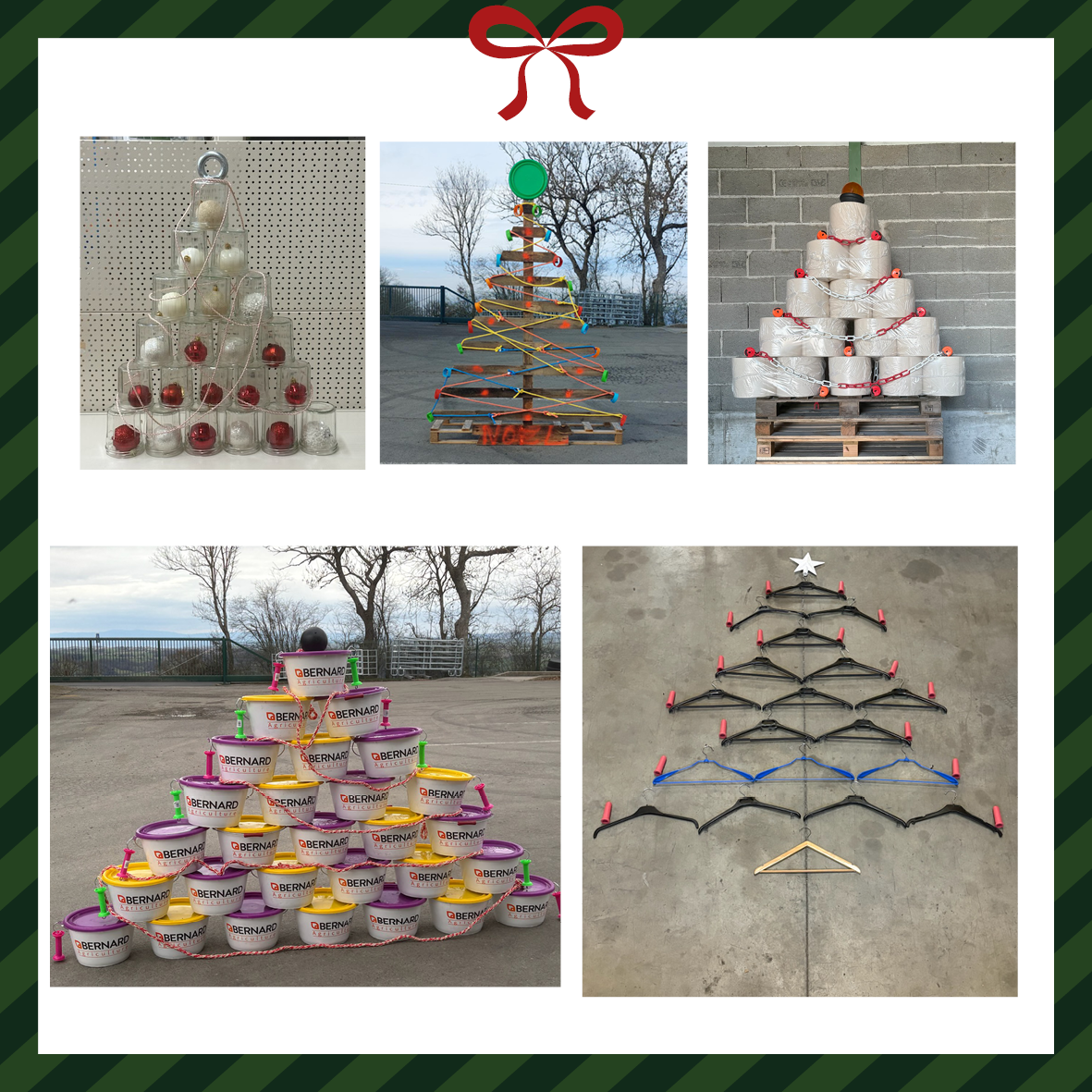 Défi à relever : Faire des sapins avec ce que vous avez sur votre site (granulés de bois, palettes etc...). Il en faut au moins 4 !