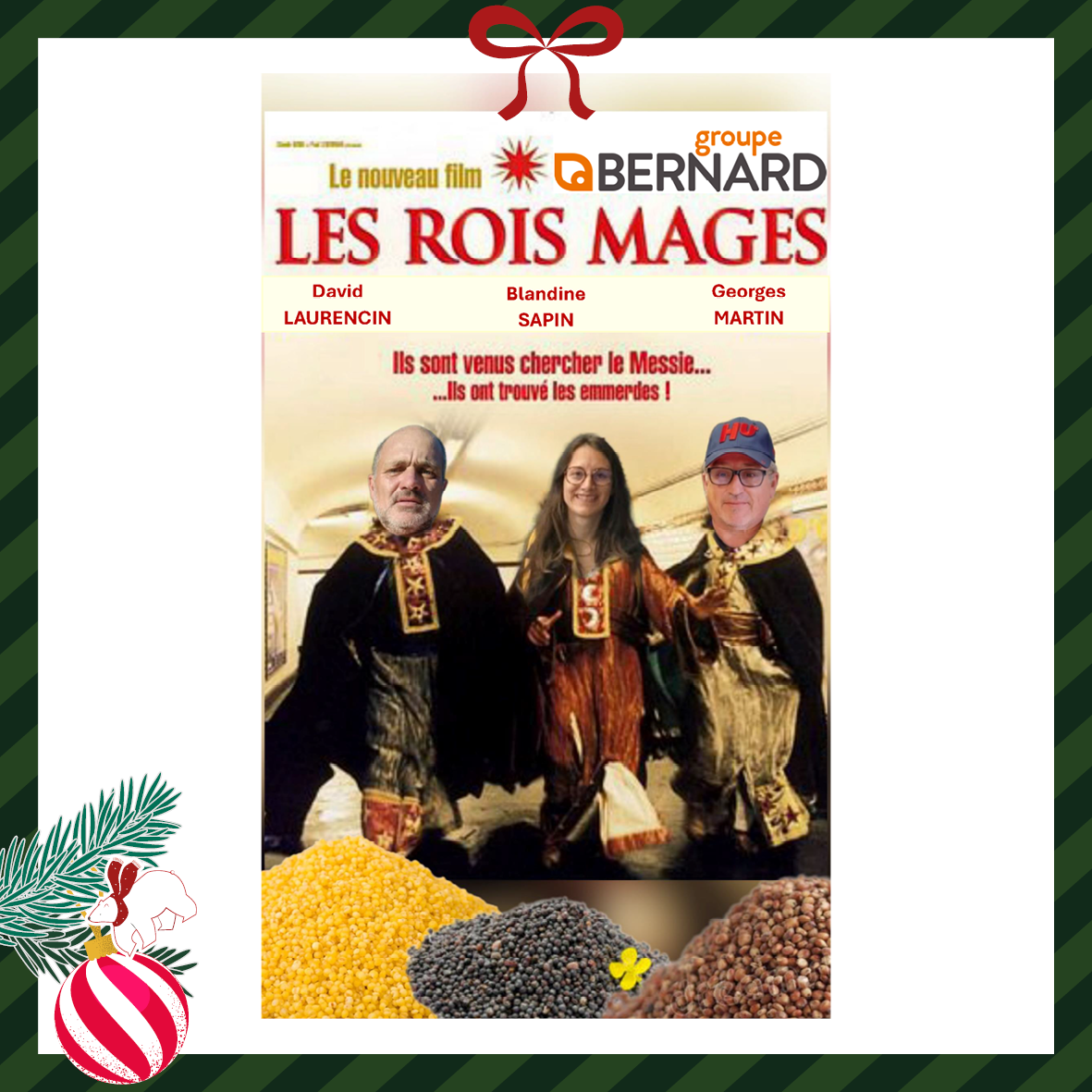 Défi à relever : Représenter les 3 rois mages avec leurs cadeaux : l'or représenté par du mais, l'encens par du colza et la mire par du sorgho.